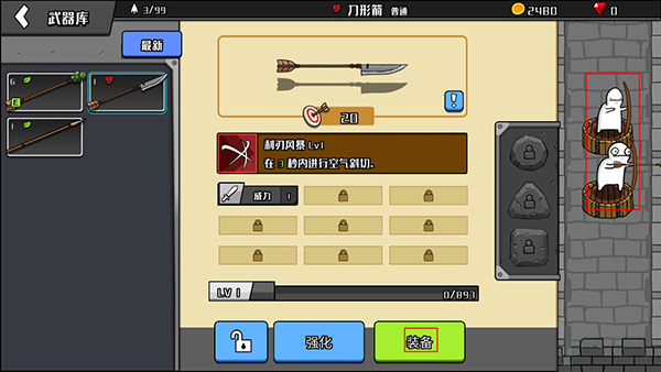 3、通过关卡后,可以解锁各种攻击和额外弓箭手,这些弓箭都可以进行强化,提高额外伤害。