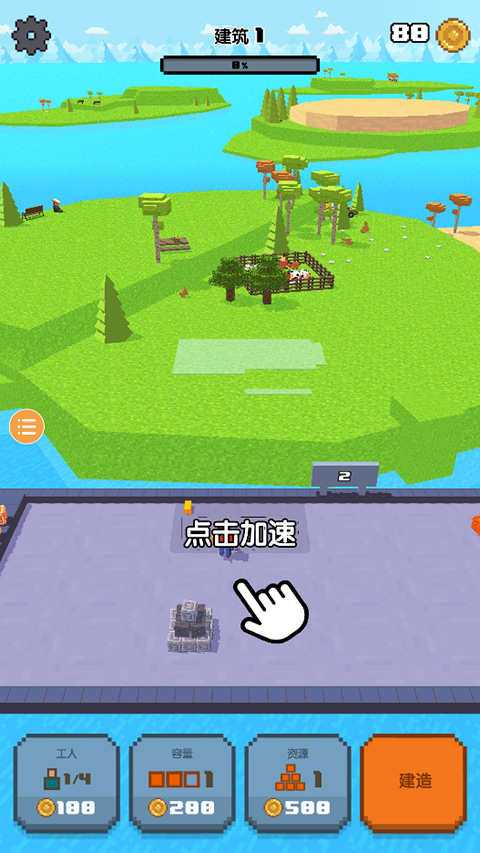 2、资源获取后就点击工人,来招募工人来使用资源开发小岛
