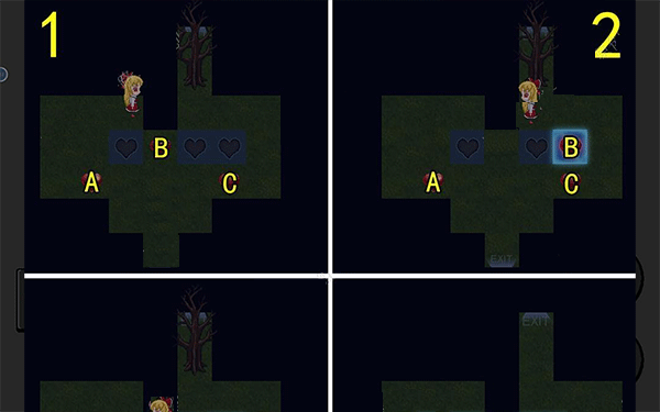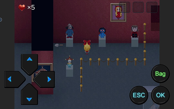 4.解开谜题:前往各房间解开谜题,包括推箱子、输入密码等,得到【红色的心】、【小刀】等道具。
