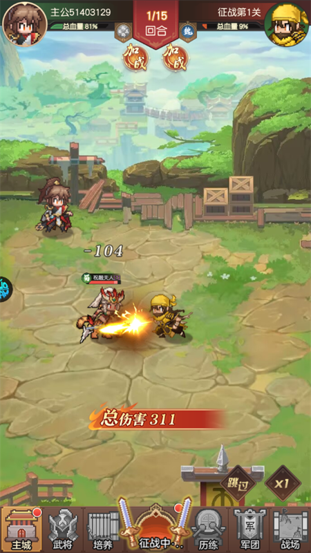 1、策略深度:战斗采用回合制布阵机制,强调兵种克制、站位搭配与技能释放时机,考验玩家战术思维。