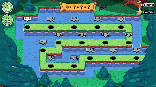 4、隐藏收集要素:关卡中散布着彩虹胡萝卜、星星道具及皮肤碎片等可收集物品,提升探索乐趣与重复可玩性。