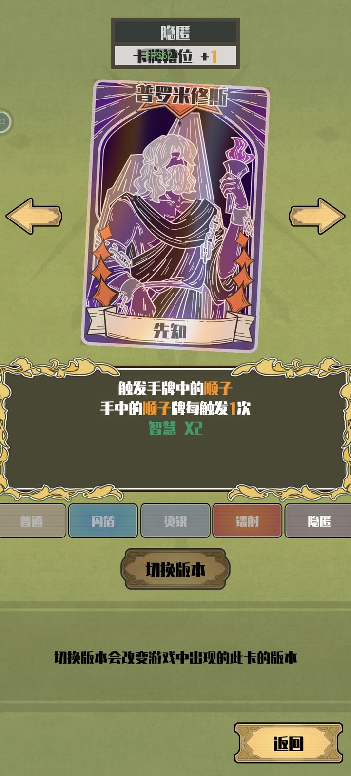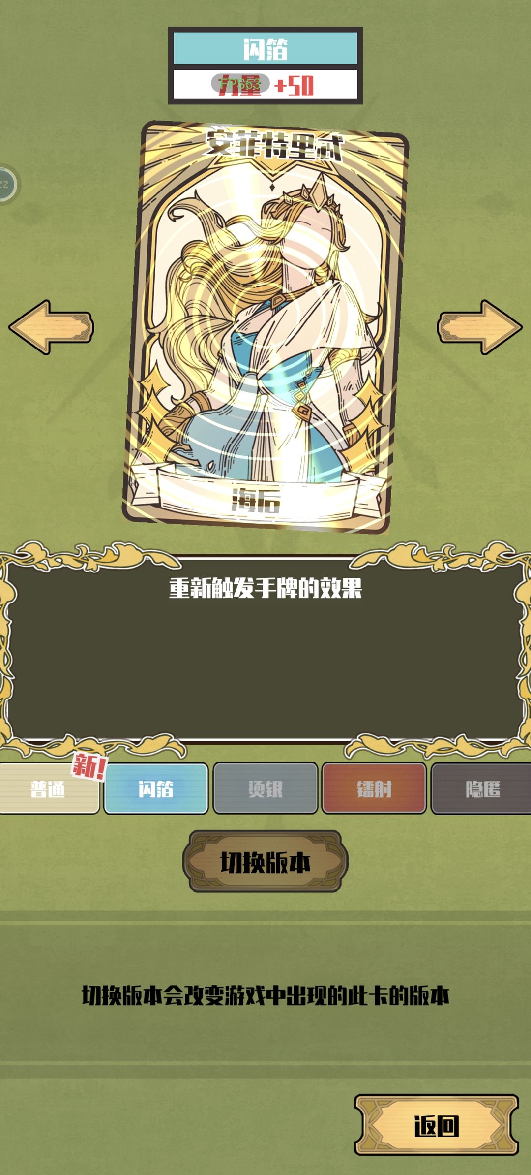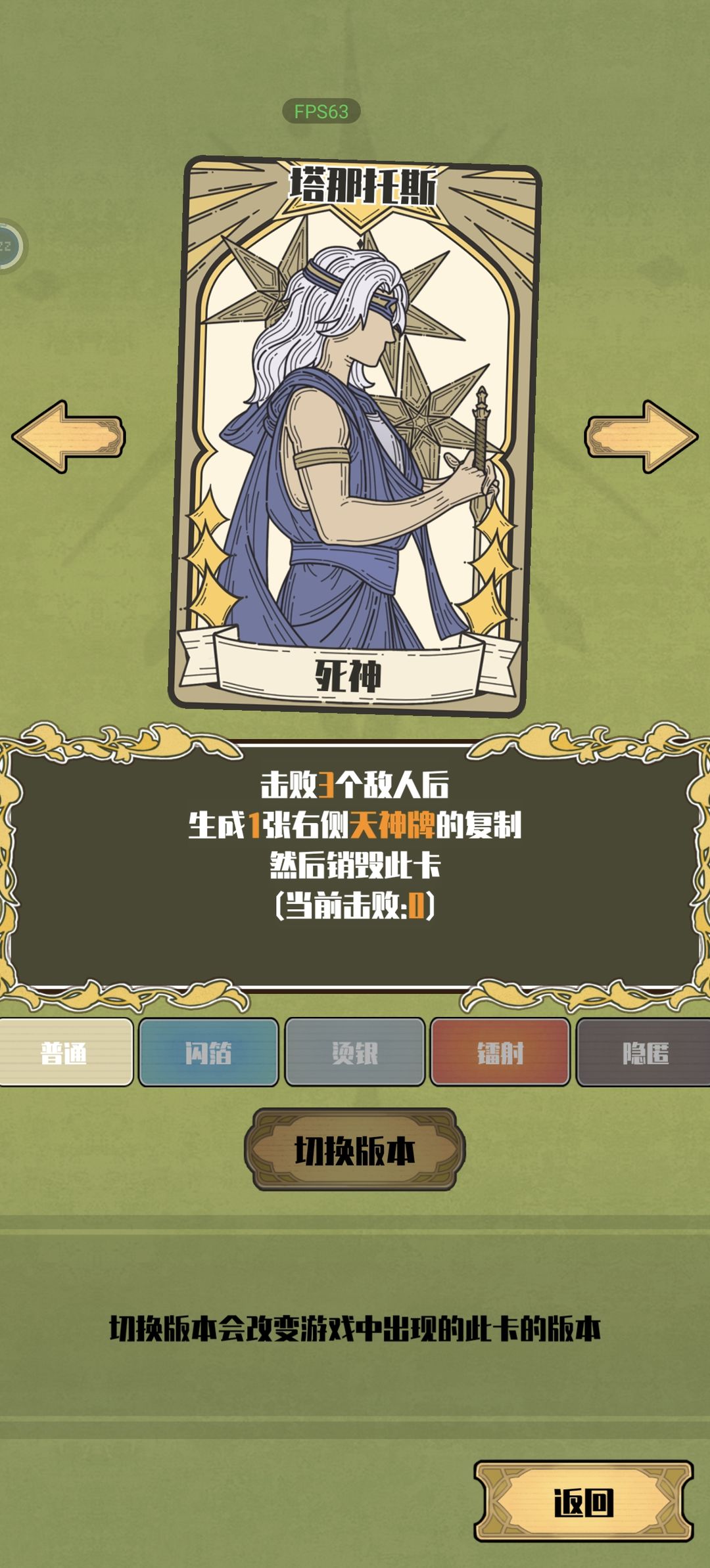 5、动态卡池与版本迭代:天神牌库持续更新,玩家可在局外收藏中切换卡牌版本,使商店刷新特定系列卡牌,增加策略多样性与收集乐趣。