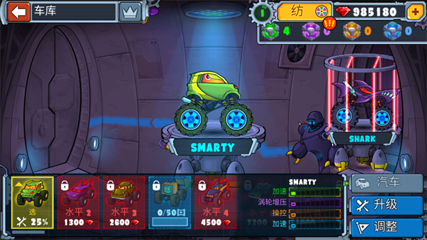支持模块化精准升级,核心强化方向包括四项:提升护甲增强防御能力,减少受到的伤害;升级涡轮优化动力输出,提升加速性能;强化速度属性延长高速续航;增加攻击伤害,提升对战压制力。通过消耗特定材料或完成任务解锁升级权限,实现战力阶梯式提升。
