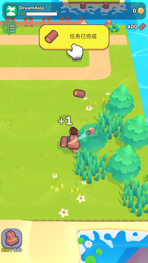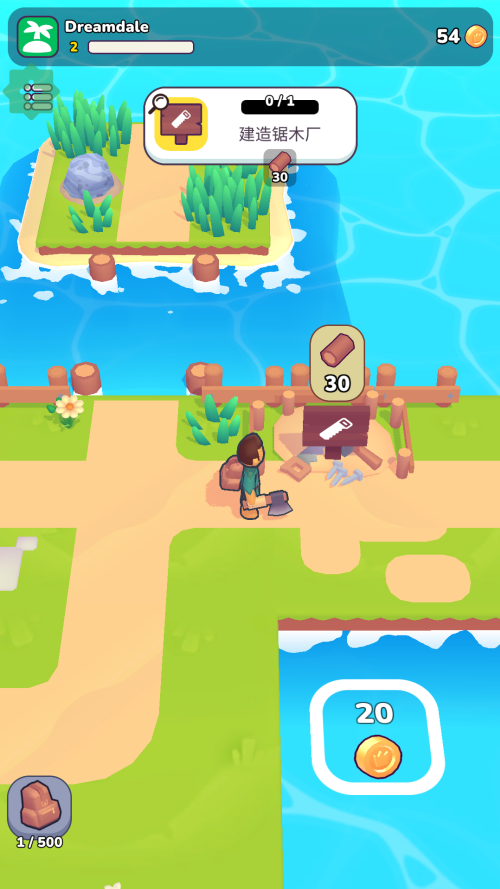 3、建造这些需要更多的木头,玩家需要不停的砍木头,不停地升级,收集,建造设施,发展并运营这个地方。