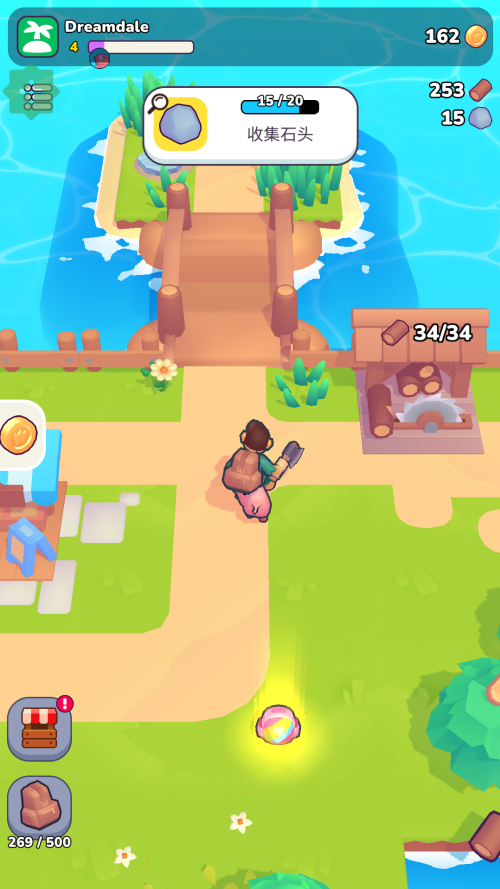Dreamdale是一款融合模拟经营与冒险探索元素的童话风手游,玩家扮演一名初出茅庐的樵夫,在梦幻岛屿上从零开始,通过伐木、挖矿、耕种等方式收集资源,逐步建造房屋、升级工具、发展贸易,招募村民协助建设。