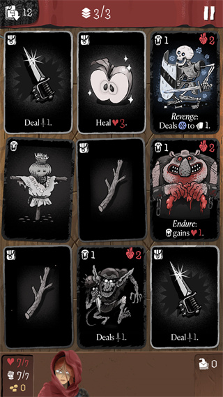 3、如果卡牌选择正确就会继续前进,如果卡片选择错误会给角色带来生命危险。