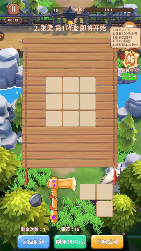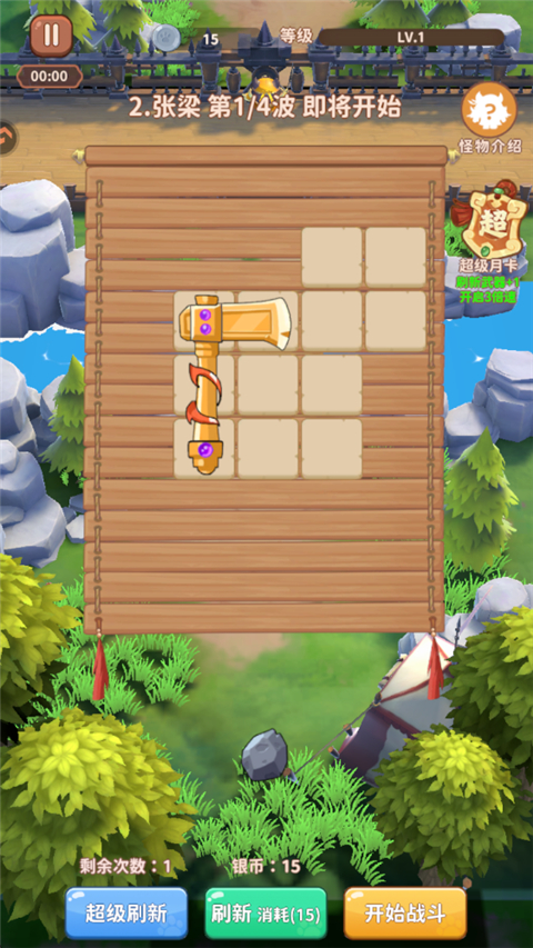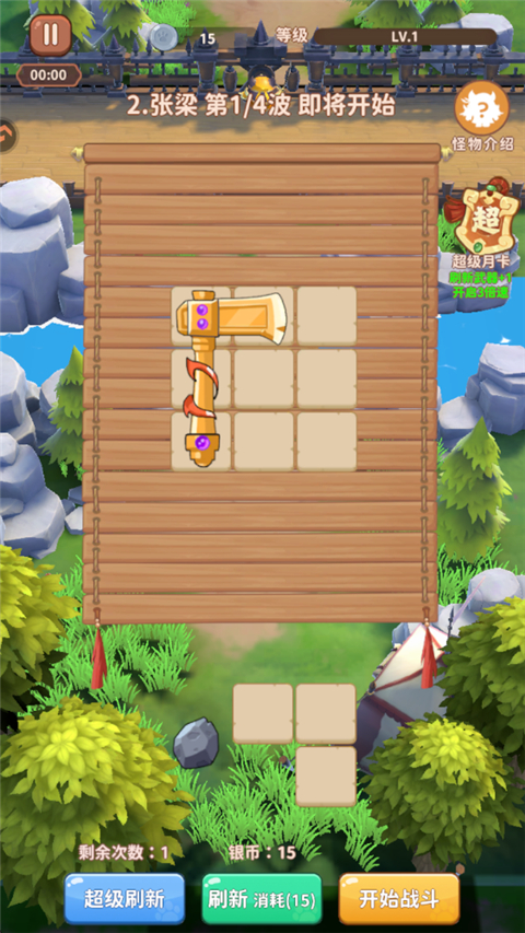 1、游戏战斗开始前,玩家可以选择武器以及格子。