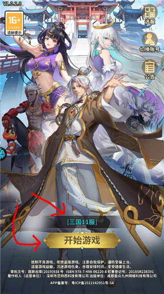 1、登录账号后可以看到如下界面,先选择服务器,然后点击开始游戏。