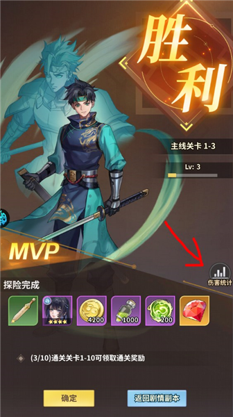 7、战斗胜利后可以获得战利品,还可以查看伤害统计。