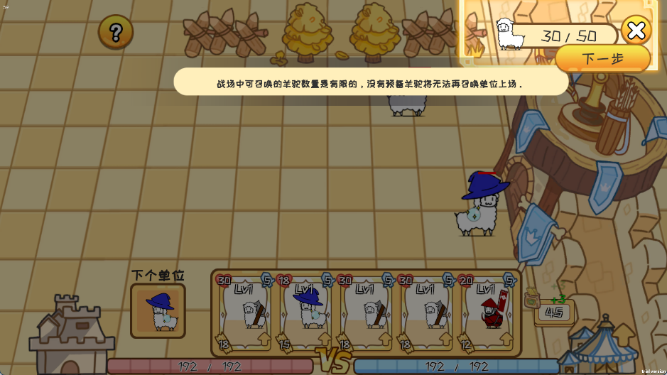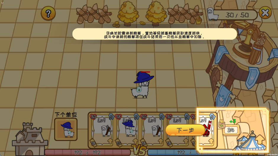 4、右上角显示的召唤羊驼的数量与上限
