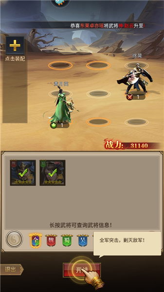 3、武将羁绊:特定武将组合搭配出战,即可触发专属强力效果,打造独一无二的制胜阵容。