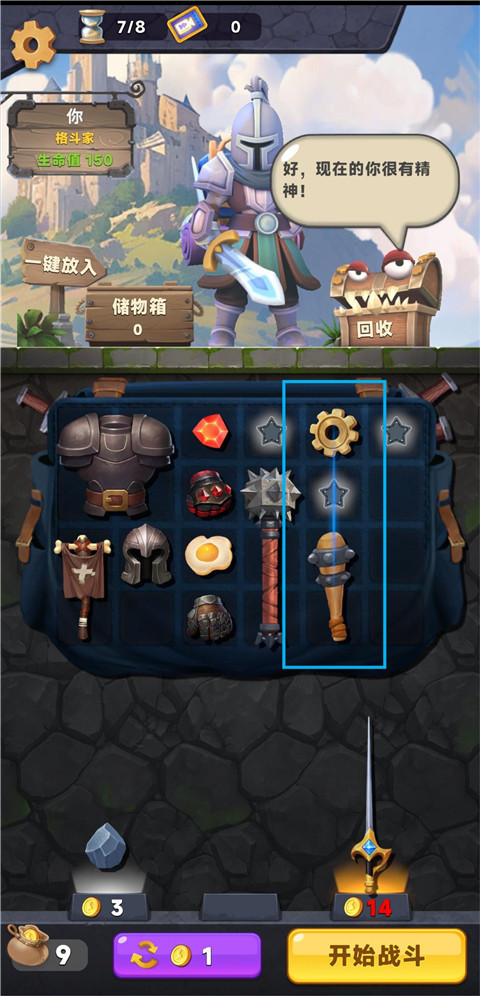 装满吧背包手游是一款合成策略战斗手游,玩家要扮演一名勇敢的冒险者,通过金币购买各类武器与道具,把它们合理放置在背包中。面对逐渐强大的敌人,只有精准调整物品摆放,打造最佳组合,才能不断提升实力,迎接更高难度的挑战。