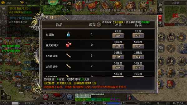 充值比例1元:100元宝;