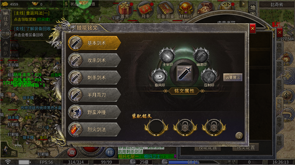 独家创新玩法,铭文不再局限于武器上。玩家可以收集所有铭文,根据自己的属性和需求,选择不同的铭文组合。在技能铭文NPC处提交铭文石碎片或职业铭文石,可以随机获得技能铭文。