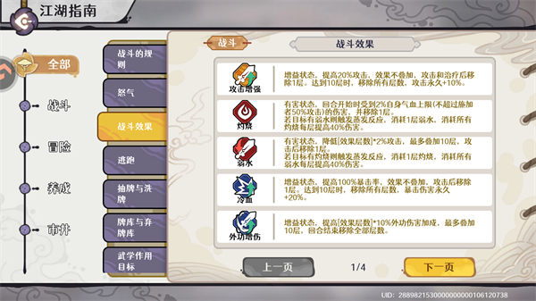 触发抽牌机制时,从牌库中抽取对应数量的武学卡牌至玩家手牌。触发抽牌机制时,若牌库武学卡牌为0则触发洗牌,洗牌会将弃牌库的所有卡牌打乱顺序放入牌库中。怒气为使用武学卡牌的费用,玩家回合结束时回满怒气基础怒气为6,可通过提高少年境界提高基础怒气值。