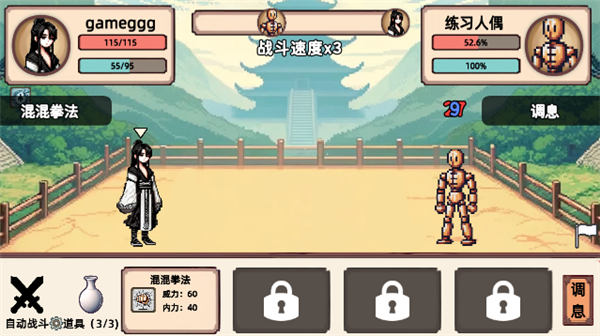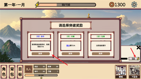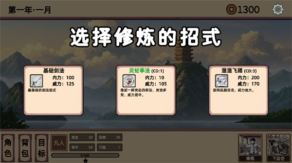 4、体力消耗完之后点击下回合即可进入下一天,可以学习新的招式。
