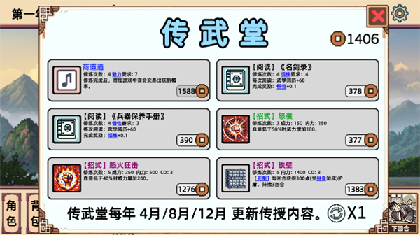 7、解锁传武堂之后还可以花费铜钱购买各种招式。