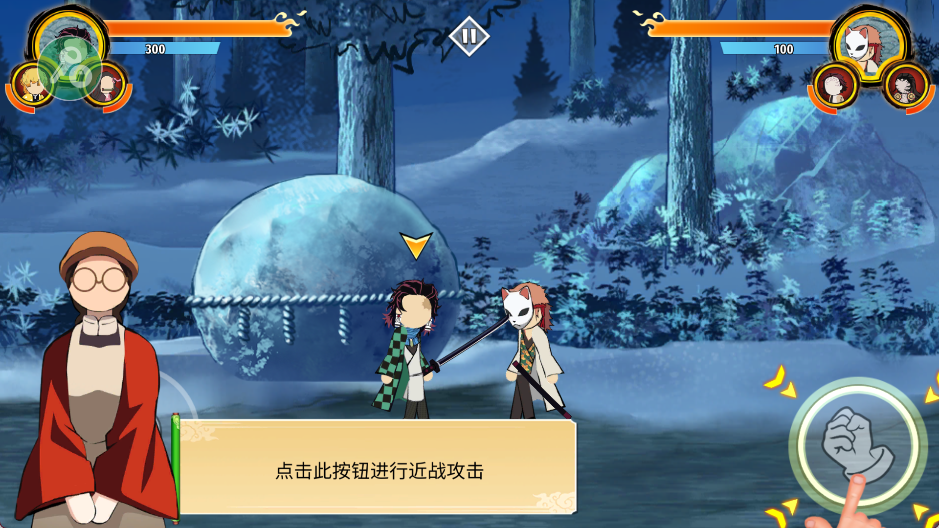 2、点击拳头按钮攻击
