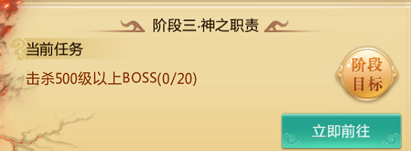 3、神之职责:击杀20只500级(包含500)以上BOSS。