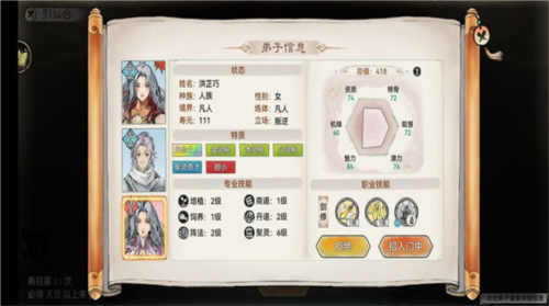 4、最好是战斗弟子和经营弟子分开,不然很容易找不到弟子了。比如你派弟子出去战斗然后发现门派里弟子负责的商店没人了。