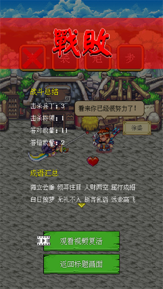 2、要点击游戏下方的字来和游戏上方的字组成成语即可攻击;