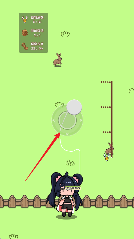 1、进入游戏点击发射爪钩,钩爪会自动向前移动碰到动物时对它造成伤套动物生命为0时会被抓到。