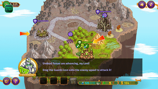 3、拖动士兵头上的攻击图标可以控制它们的行动;