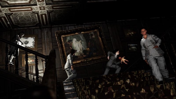 在合作多人游戏中,你们一起努力帮助对方逃离房子,你可以在女孩抓到某人时打断她,以此来拯救对方。