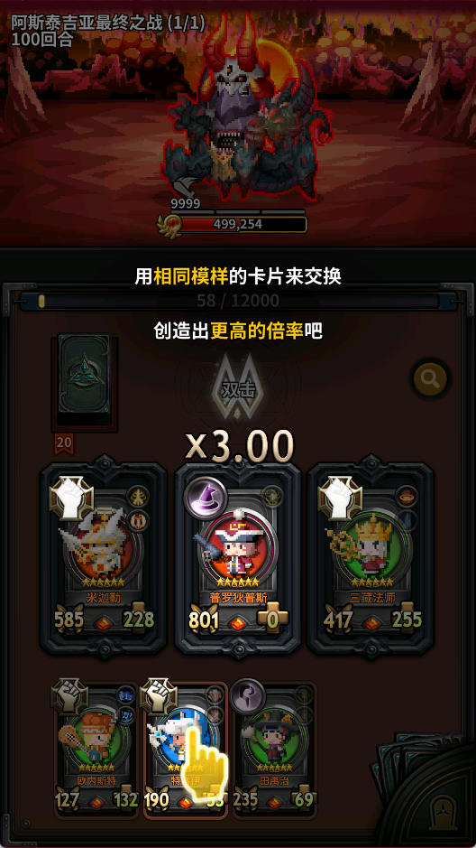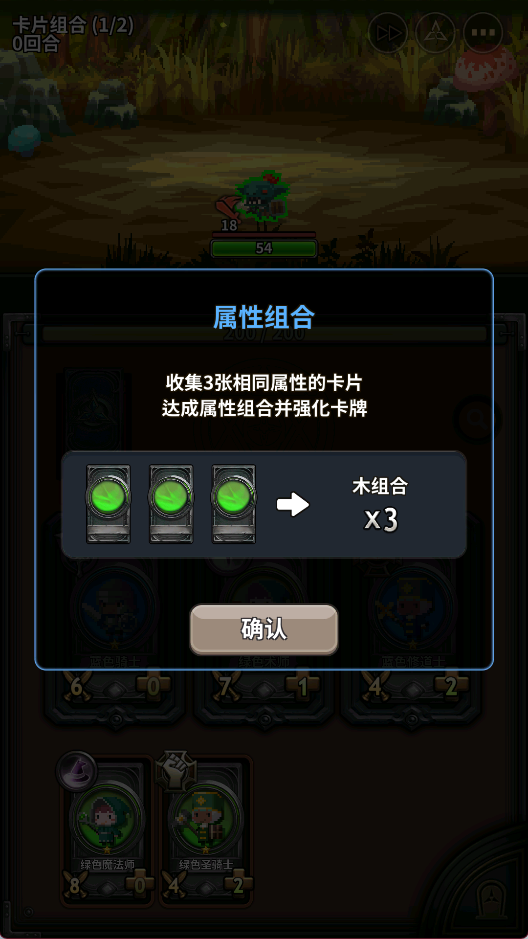 1、三卡组合机制:每回合选择三张卡牌组成阵型,不同组合(如顺子、同花、童话牌型)可激活专属技能,策略变化无穷。