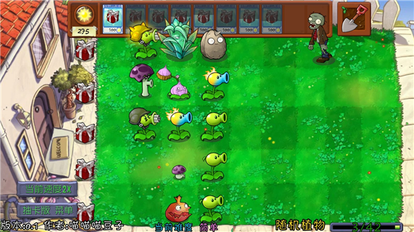 2、对局中通过种植植物来抵御僵尸的进攻,右下角还会给出僵尸进攻的进度。