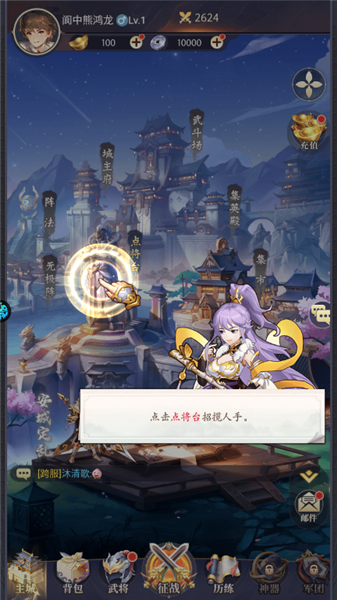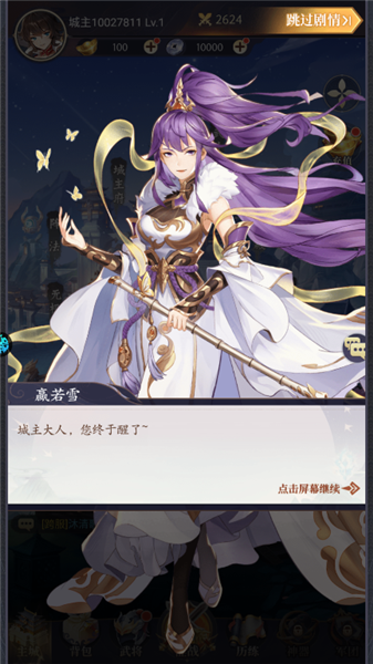 1、进入游戏后首先会看到自己的新手向导赢若雪,应该是个原创角色。