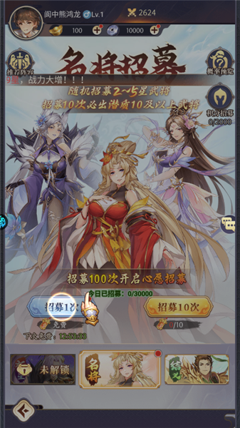 4、封面都是女将,实际上是有男将的,第一次招募免费。