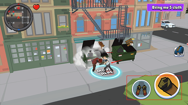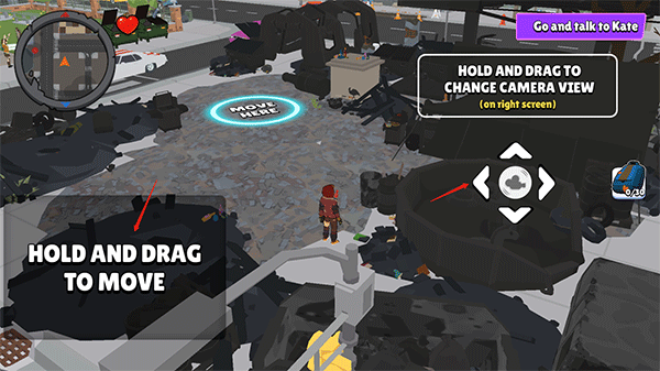 1、在游戏中你将扮演一名乞丐,运用左边遥感操控角色的移动,右边调整视角