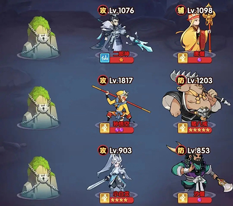 3、游戏提供供9个阵位。玩家可以很快解锁前六个,而之后的阵位解锁则需要玩家闯过一定数量的关卡才能解锁。