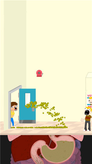 《呕吐大战》(Bathroom Break)是一款休闲手游,以夸张搞笑的“呕吐战斗”为核心机制,打破传统益智游戏的框架。玩家需操控一名因肠胃不适而被迫用呕吐物自卫的角色,在校园等日常场景中对抗各类干扰者,风格融合像素美学与网络恶搞文化,提供多种角色和模式选择。