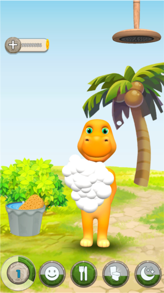 4、切换至洗澡界面,可为小恐龙清洁身体,打造干净状态。