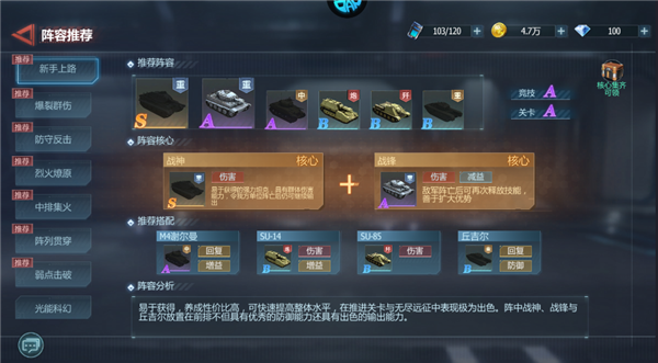 阵容组成:战神+战峰+M4谢尔曼+SU-14+SU-85+丘吉尔。