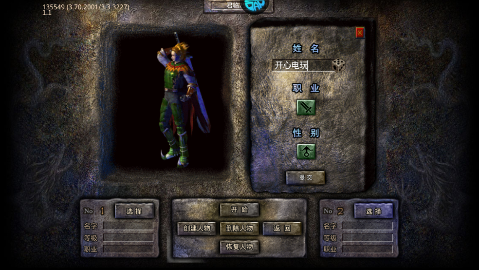 2、点击启动按钮开始游戏,进入传奇冒险世界。