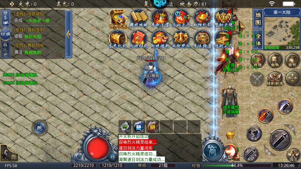 4、进入游戏后重生在第一大陆,开启初始探索之旅。