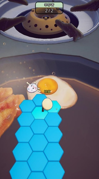 2、对局过程中会随机出现各类动态机关:高速旋转的危险铲子、湿滑难行的黄油滑道、突然翘起的煎锅边缘,这些元素是需要躲避的致命威胁,是可以利用的翻盘利器。