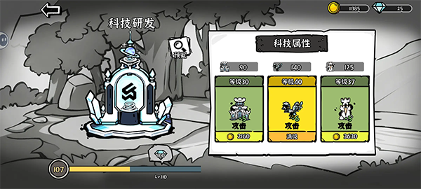 3、科技研发 用金币进行升级,初始可升至10级,三个科技达到相同等级(10)后可再升10级