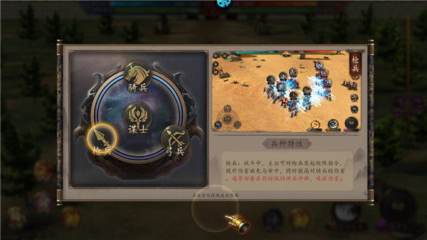 2、兵种分骑兵、弓兵、枪兵、谋士,各有专属特性。