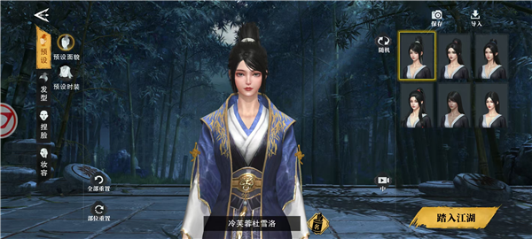 2、编辑角色外观,和设置角色的昵称,随后点击屏幕右下角的“踏入江湖”。