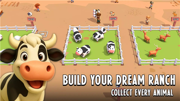 1、美术风格主打生动活泼基调,动物造型采用 Q 萌治愈设计,灵动的萌宠神态、细腻的毛发纹理都极具亲和力;西部主题场景广阔且细节拉满,戈壁、牧场、小镇等元素还原度高,搭配明亮清新的色彩体系,全方位营造出轻松解压、沉浸式的游戏氛围,瞬间代入西部冒险与经营的双重体验。