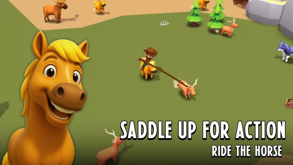 1、滑动屏幕瞄准并抛出套索,精准套住奔跑的动物,将其捕获。