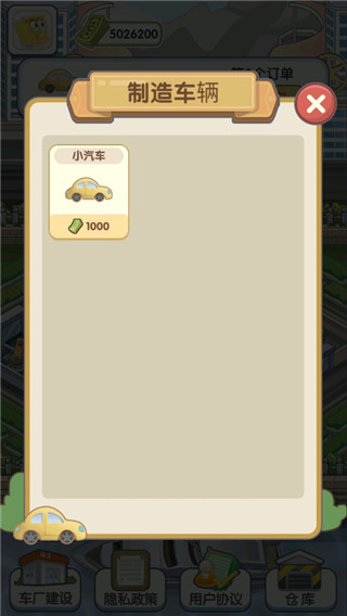 1、下载进入我的帝王之路游戏,游戏中拥有多种汽车制造厂;