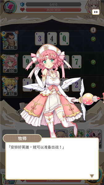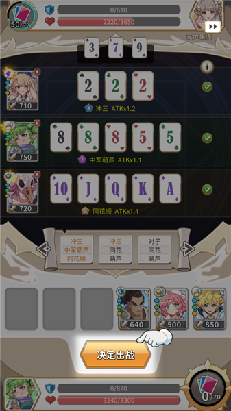 2、牌型准备好了之后就可以安排相关的英雄了。