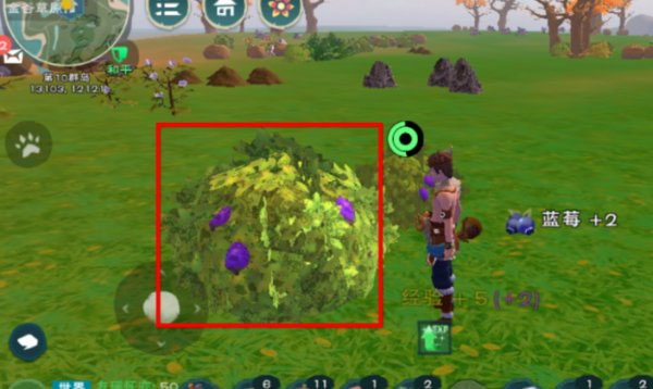2、收获草莓后我们还需要收集蓝莓。蓝莓丛和草莓丛颜色一模一样,只不过草莓是红色的,蓝莓是蓝色的,蓝莓也是非常常见的水果。