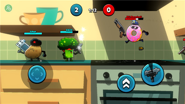 食物帮派是一款卡通风趣的快速互斗手游。玩家能从14种厨房食材里挑选角色,两两组队匹配对战,限定时间内积分高者胜。游戏画风玩法简约,却带来独特乱斗乐趣。在厨房场景中,各疯狂食物持不同武器,玩家需适时跳跃躲避攻击、瞄准时机出击,收集卡牌碎片强化角色,提升实力,解锁更多食物组建专属帮派。