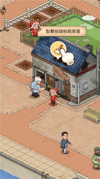 2、根据引导提示进行操作,首先需要点击按钮为小屋重新粉刷;